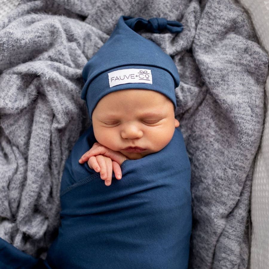 Our adjustable knotted beanies are made with the same soft & stretchy jersey fabric as our stretch swaddles.
