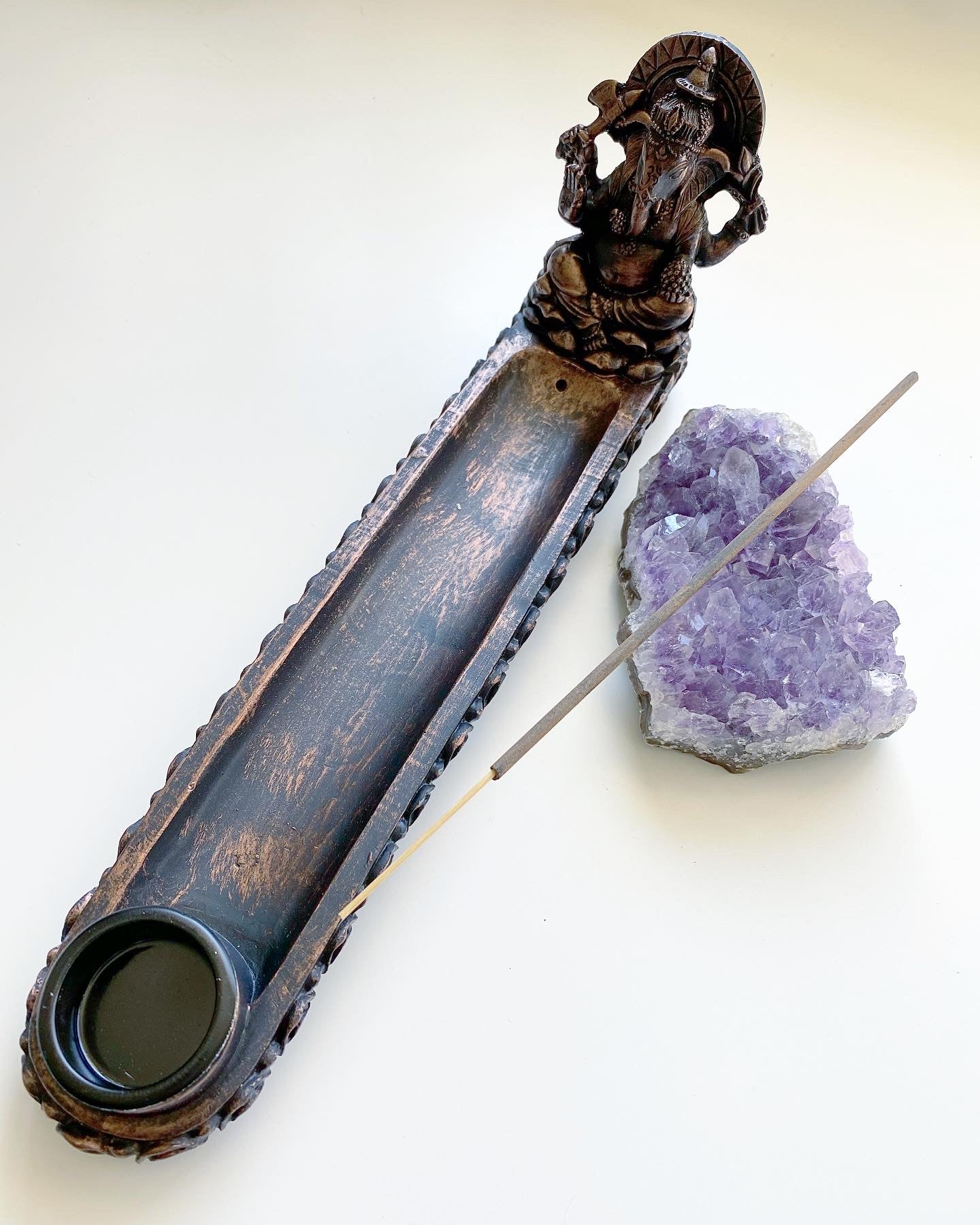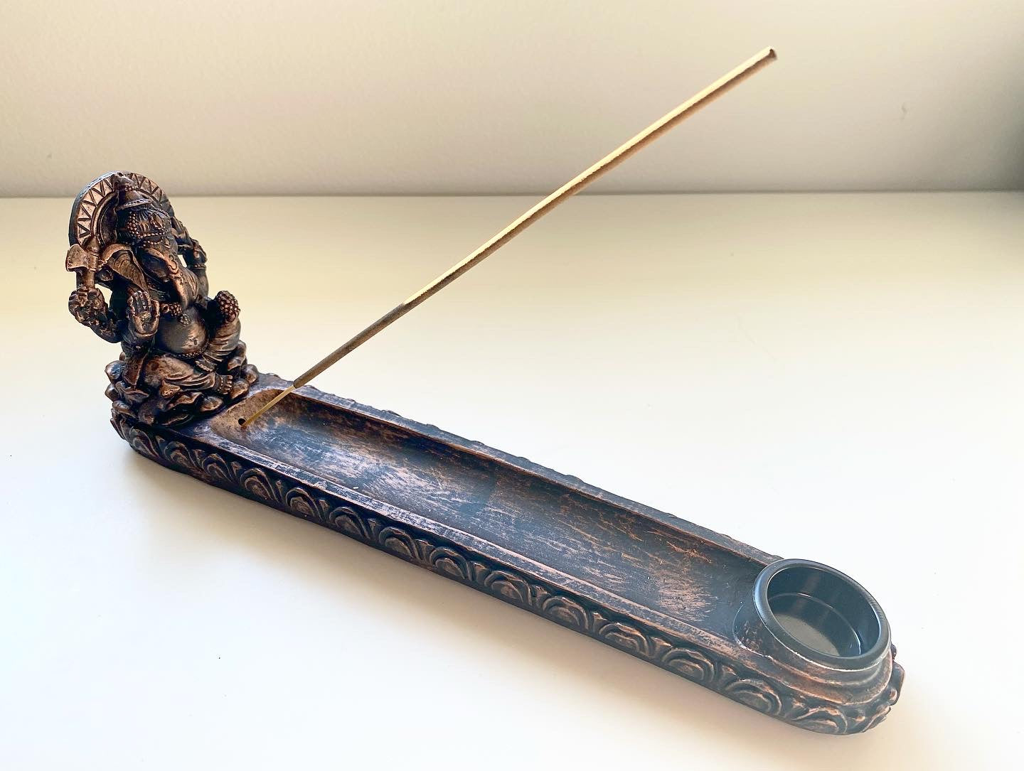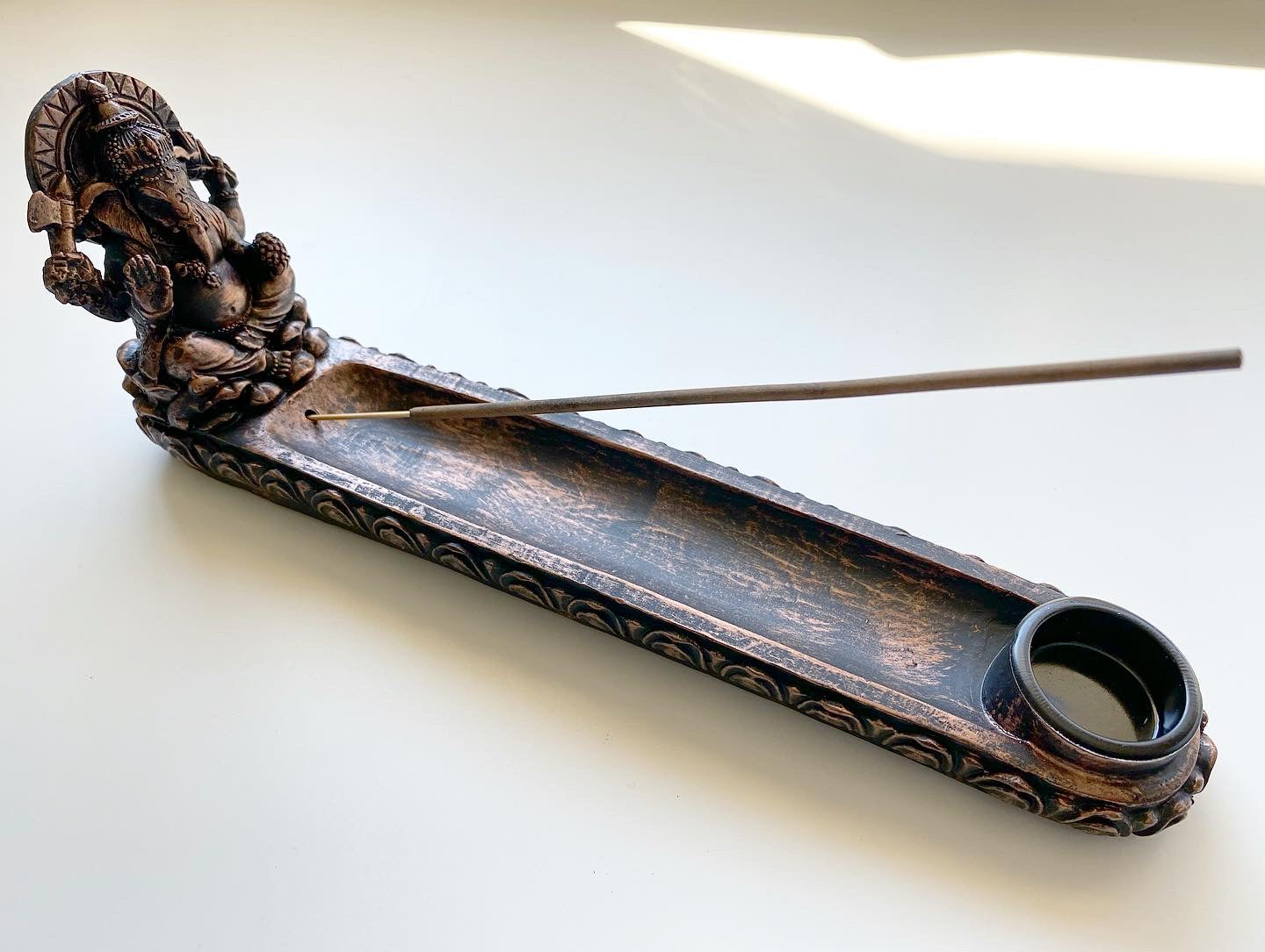 Fill your room with the subtle scent of your choosing with this deity Ganesh incense burner made from Polyresin.